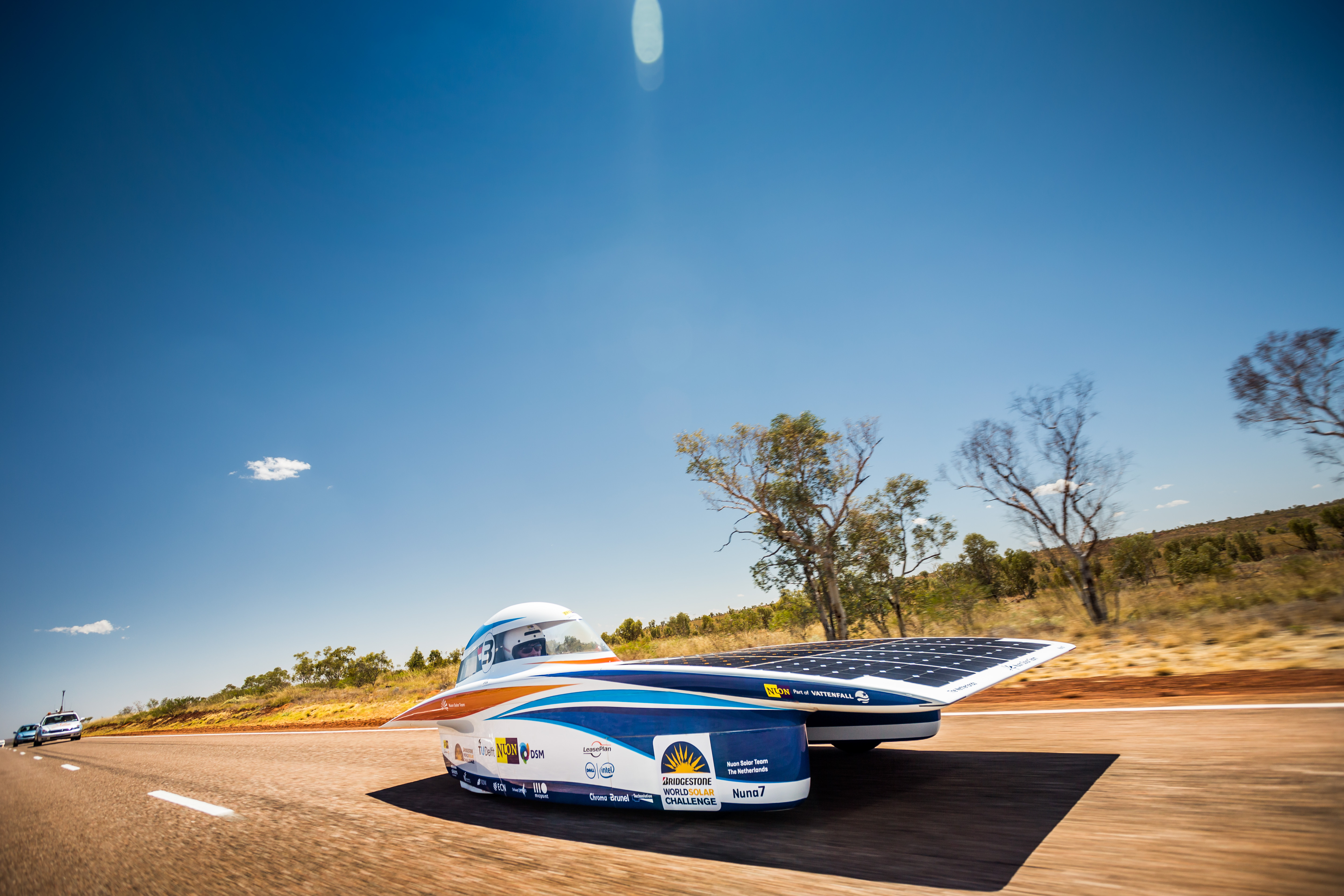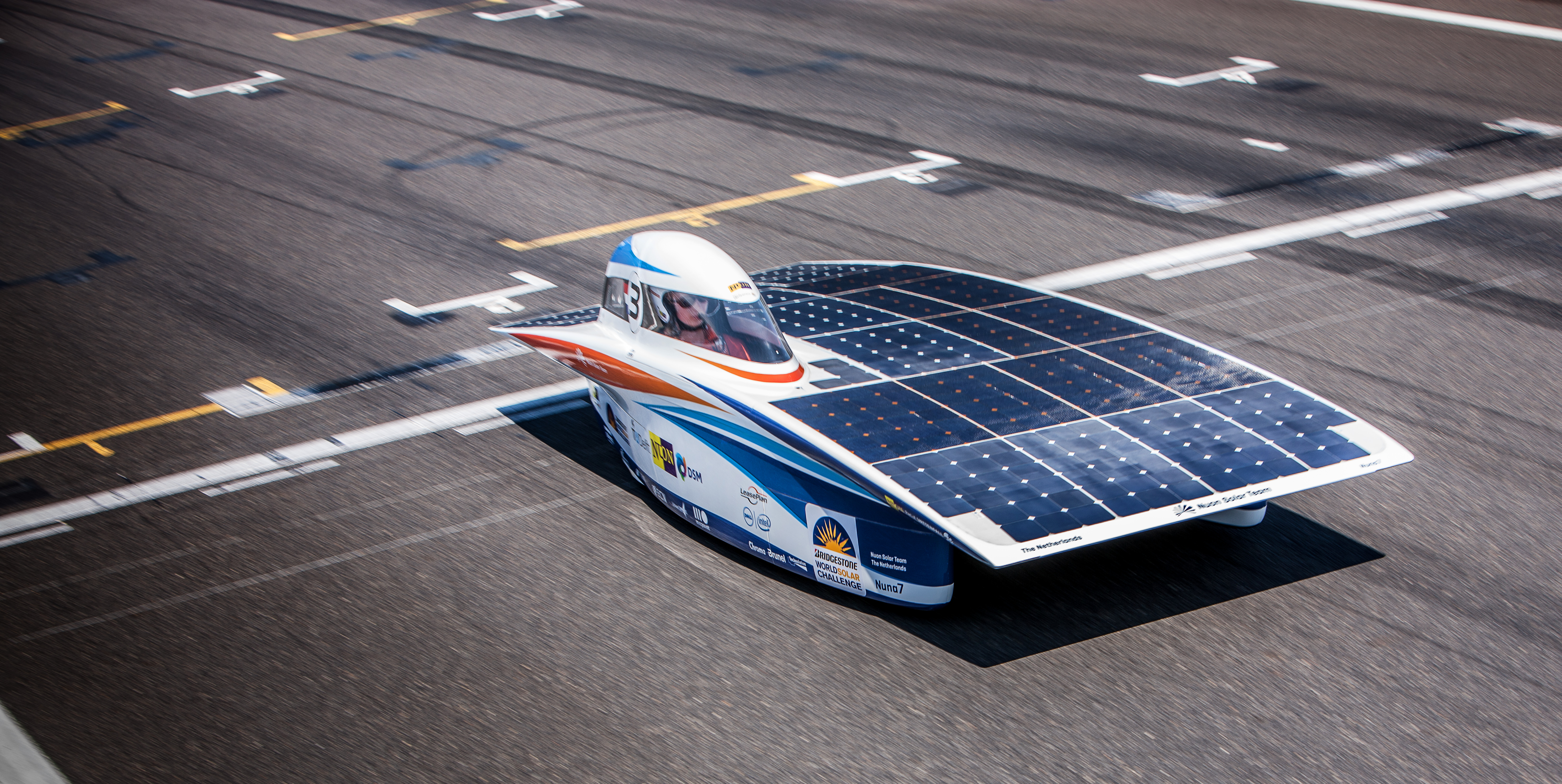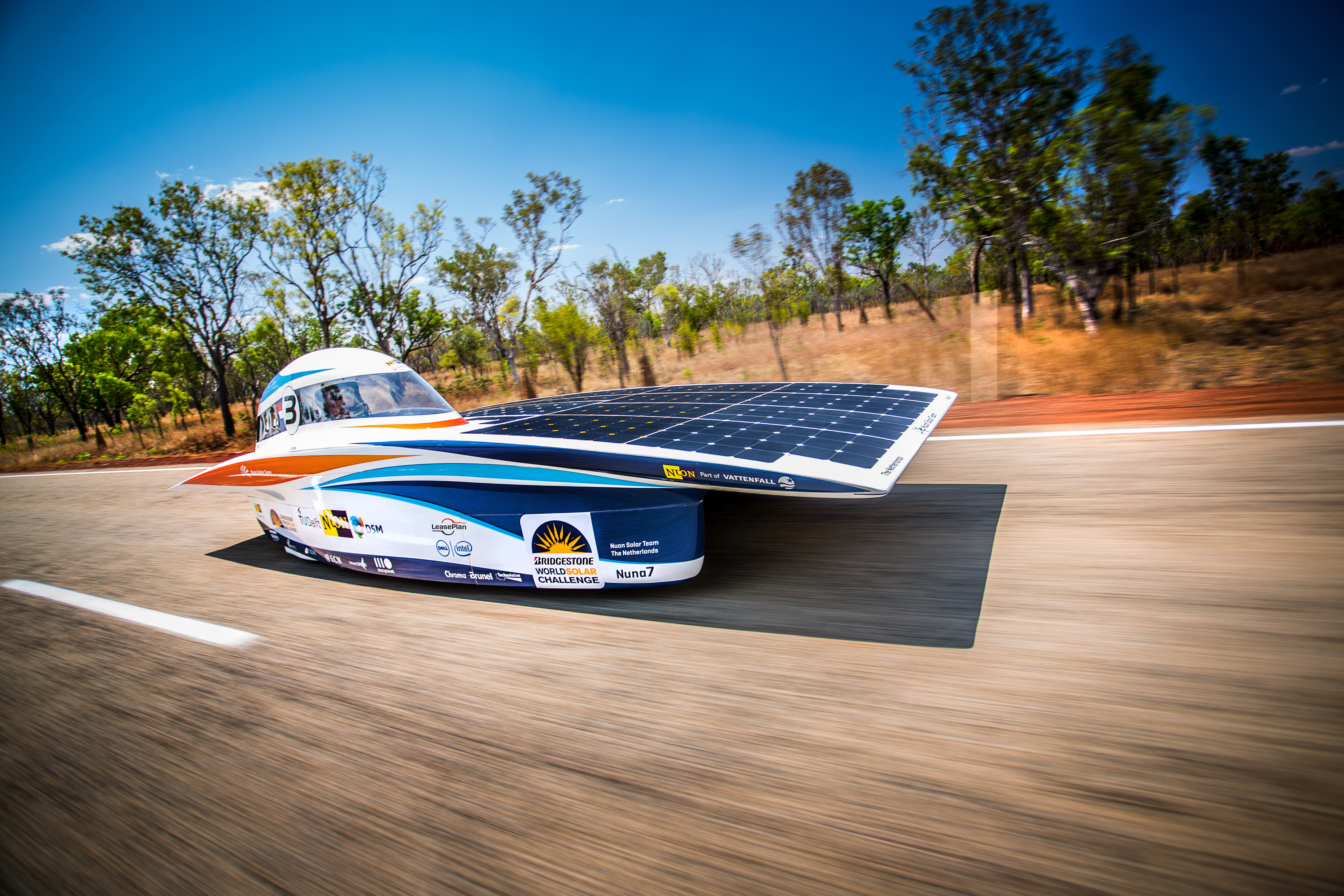 Nuna 7 was the team's first solar car with four wheels. New regulations required cars to have at least four wheels, whereas previous Nuna models had three wheels.