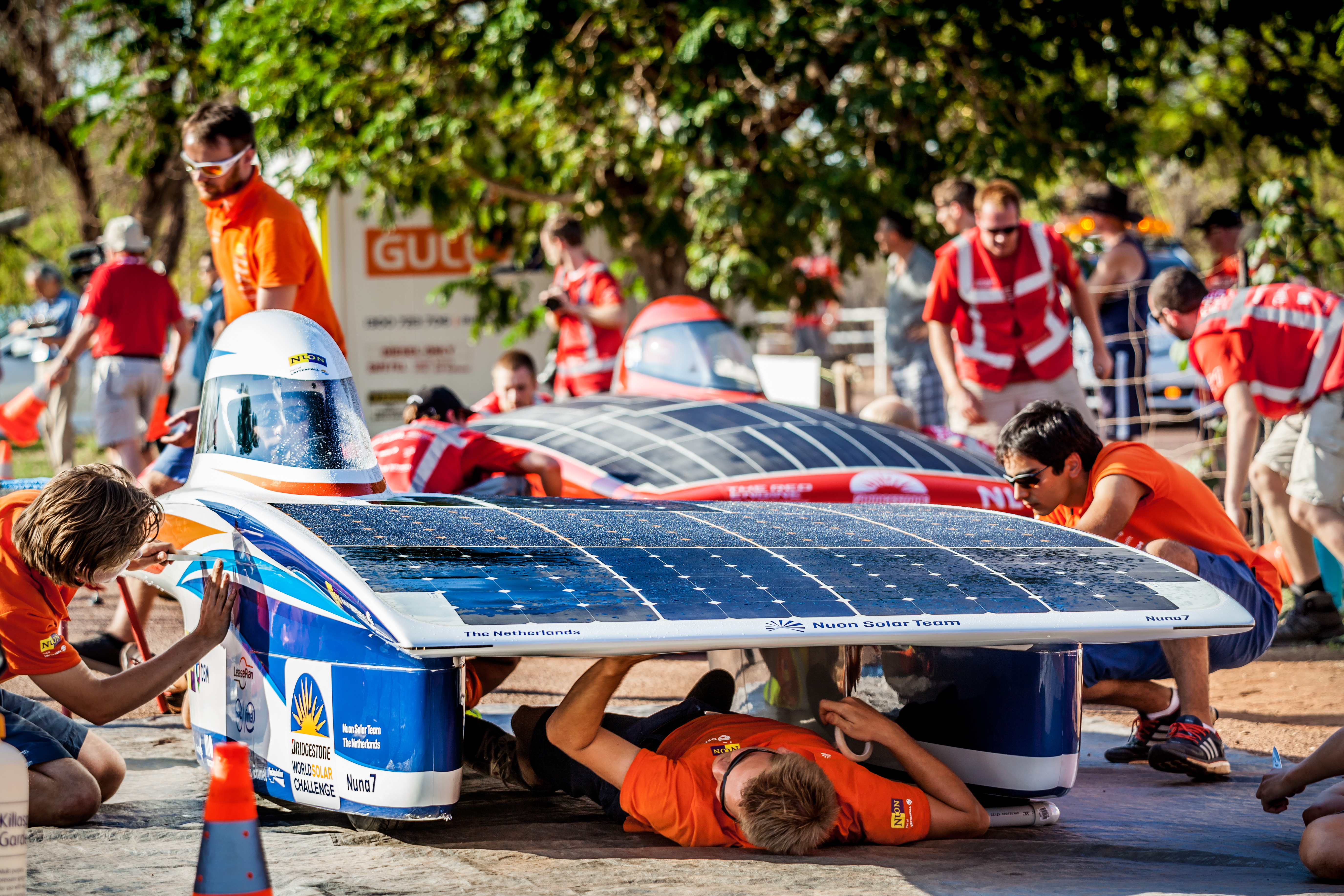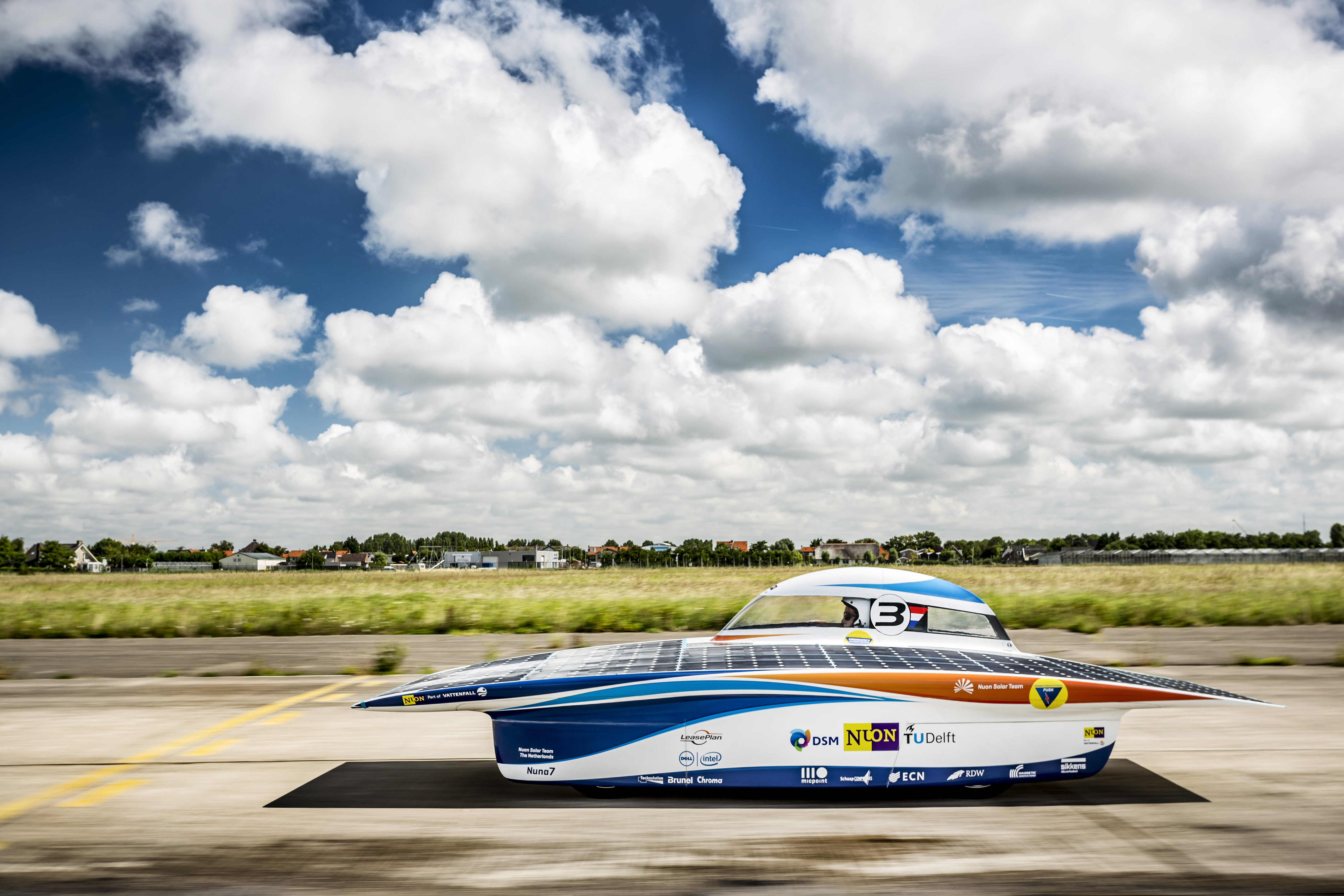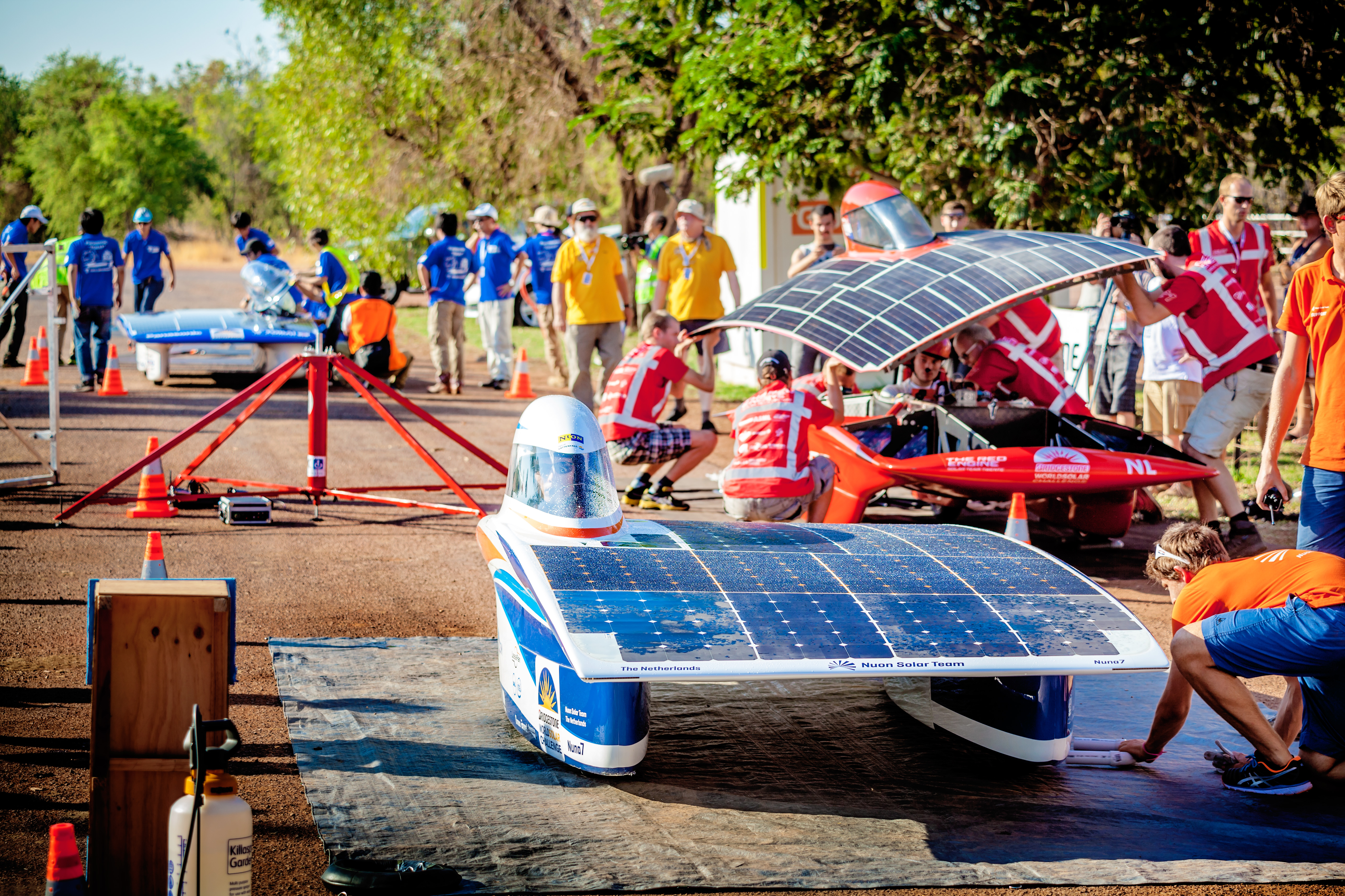 Nuna 7 was the team's first solar car with four wheels. New regulations required cars to have at least four wheels, whereas previous Nuna models had three wheels.