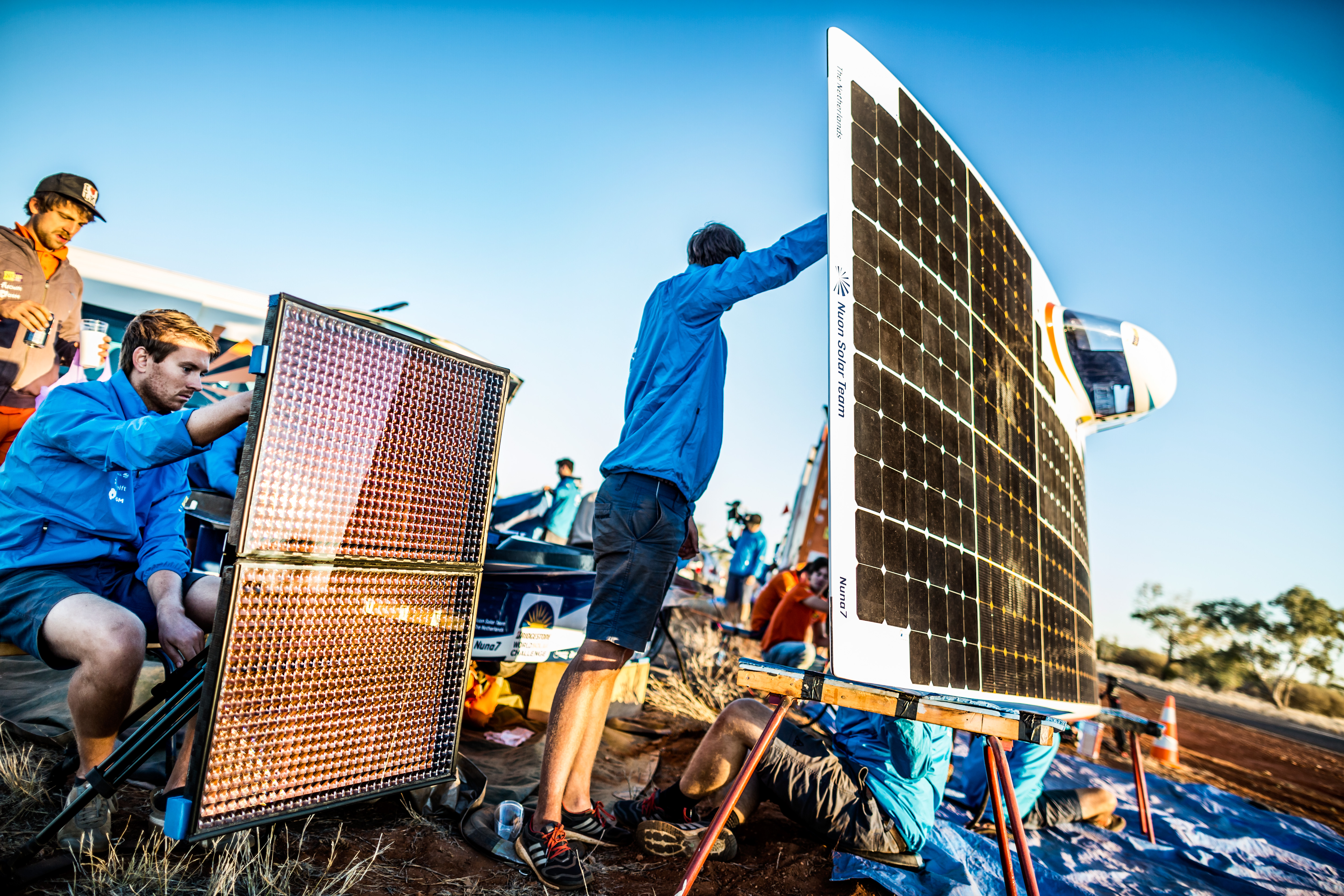 At the start of the World Solar Challenge, Nuna 7 surprised competitors with its use of concentrators. These tiny solar cells were equipped with lens systems to concentrate additional sunlight.