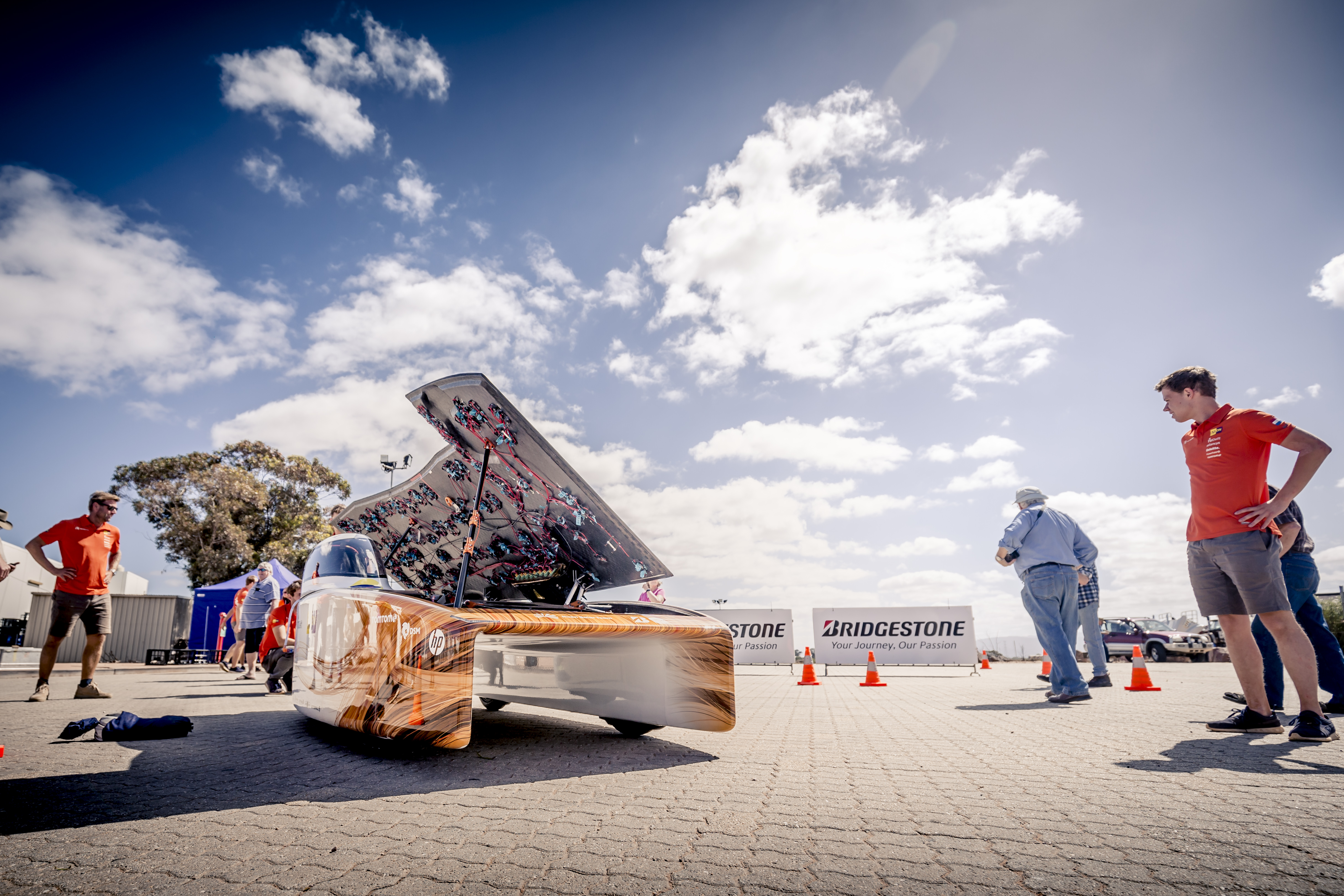 For the first time in eight years, the team used Gallium-Arsenide cells, which are also used in space technology. They had to choose between a larger panel with lower efficiency (Silicon) or a smaller panel with higher efficiency (Gallium-Arsenide). Ultimately, they opted for the latter, enabling the car to be six percent smaller.