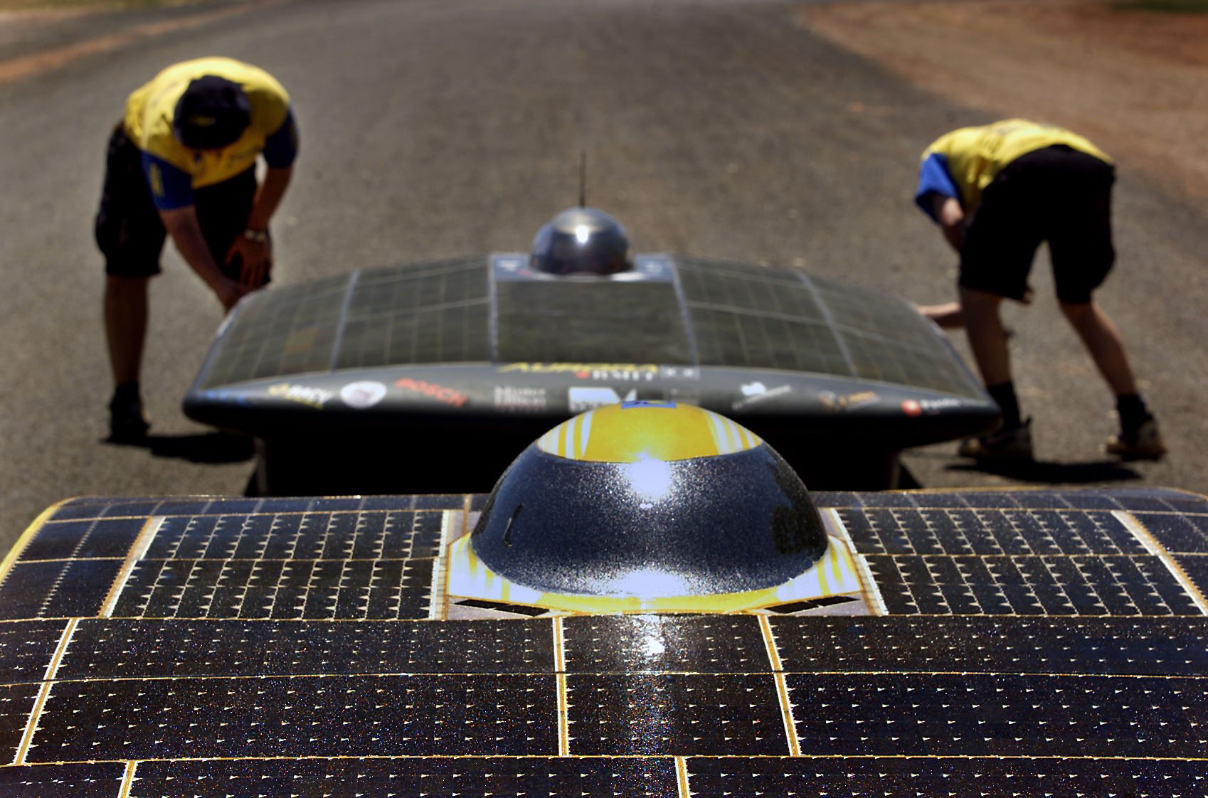 Wist je dat bij de eerste zonneauto’s de hele bovenkant moest worden opgetild om de cockpit te openen? Als de coureur wilt uitstappen moesten veel teamleden helpen om de bovenkant eraf te tillen.